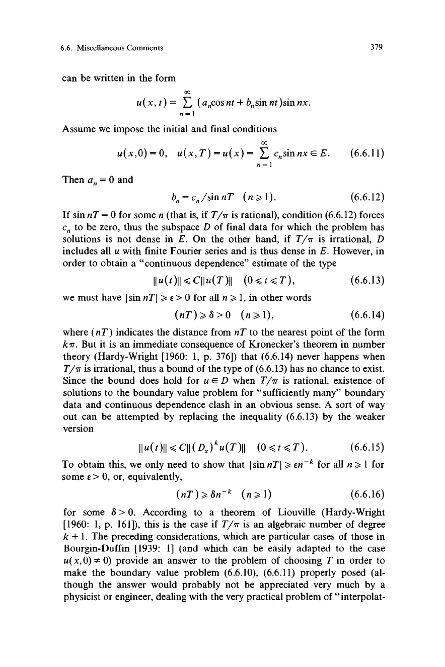 dependence of the solution on the initial data (6.6.7) is examined. The