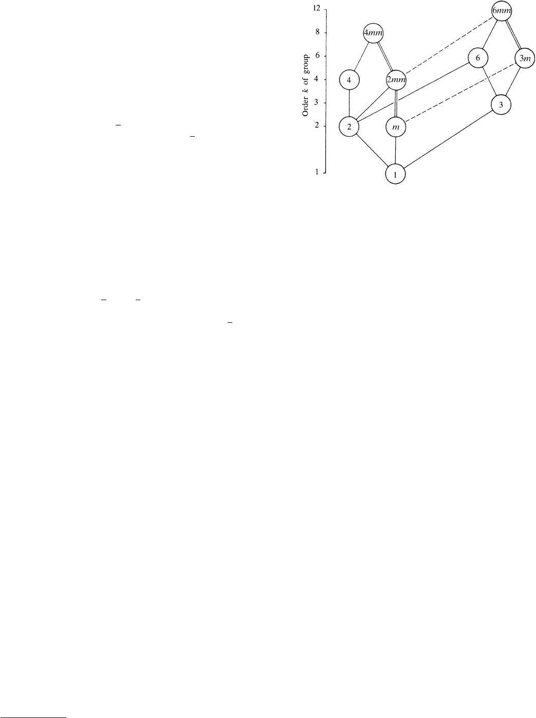 dimensional crystallographic point groups. Solid lines indicate maximal