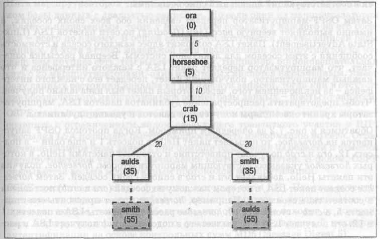 ку узнал этот маршрут из обновлений, полученных от узла horseshoe, рас-