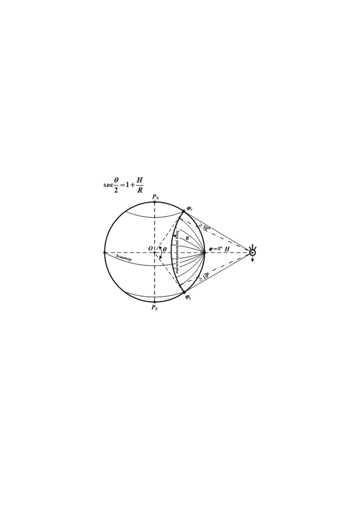 Пересечение гиперболоида с поверхностью Земли дает изолинию – сложную кривую, близкую по