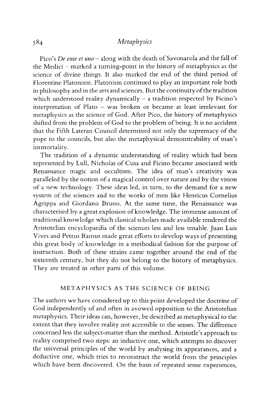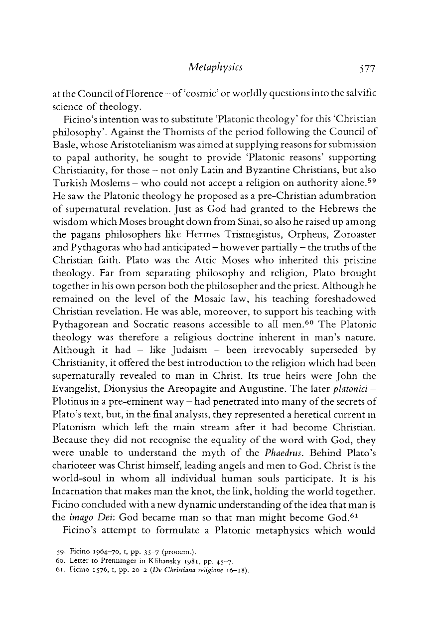 of Ficino's approach to the problem of the relationship between