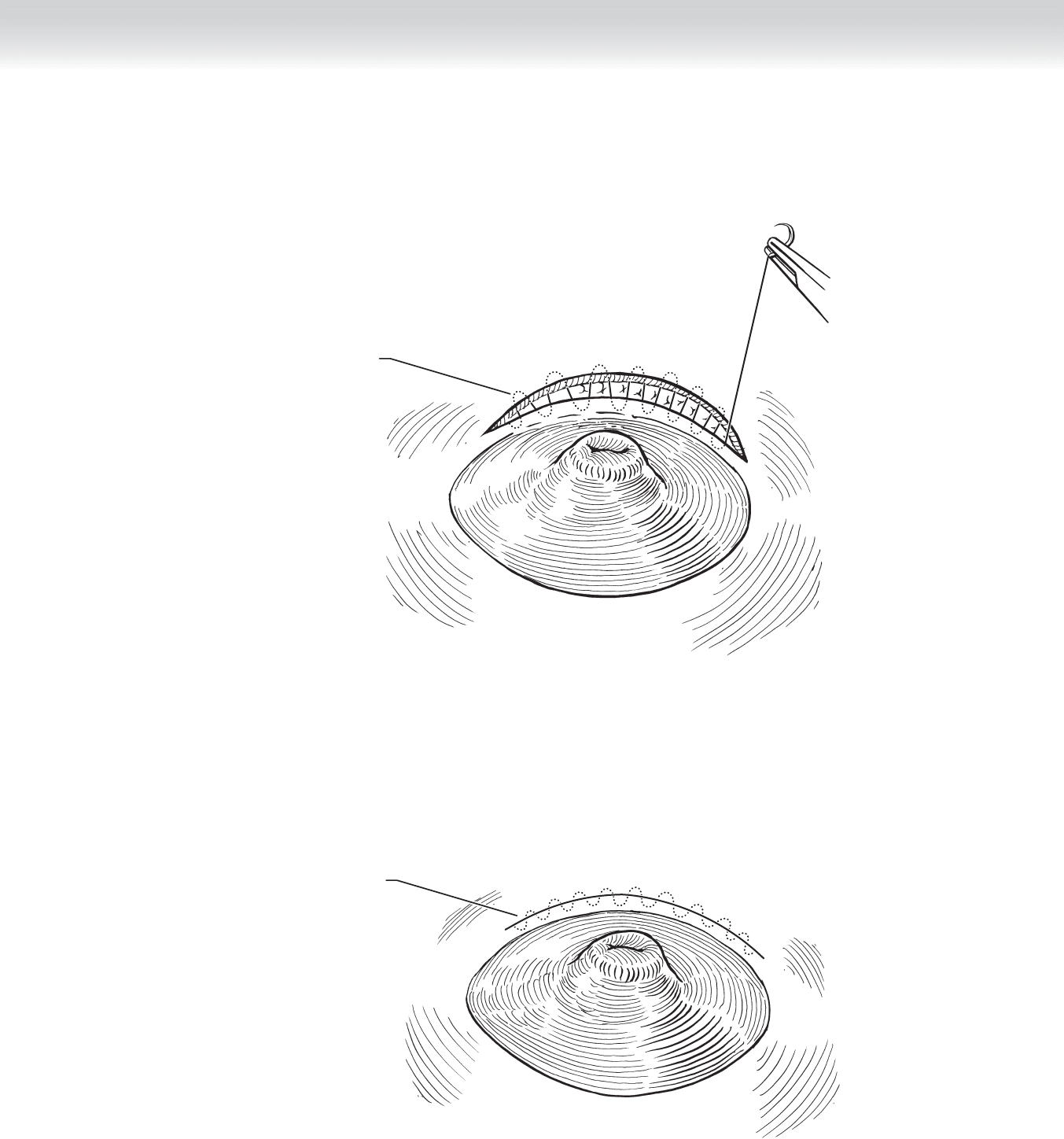 for the excision. An areolar margin incision is used, and the areola is elevated from underly-